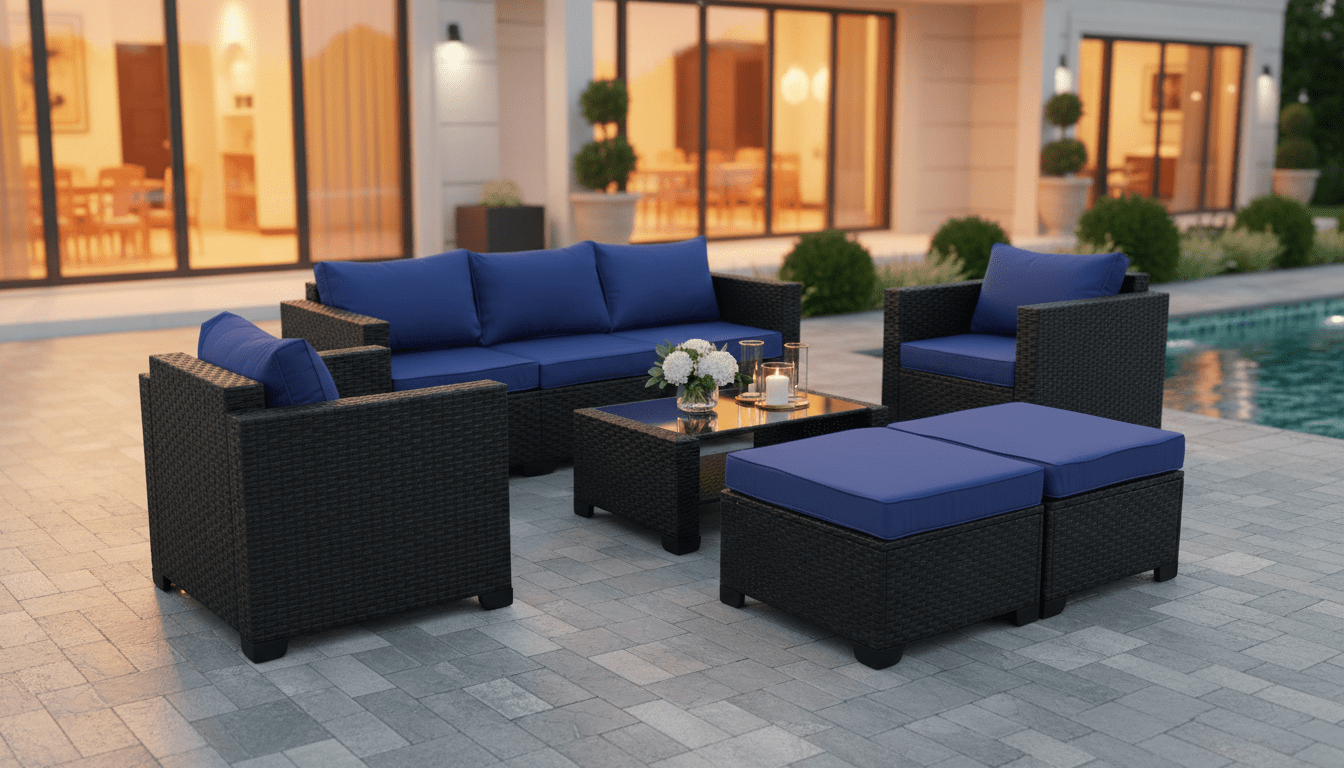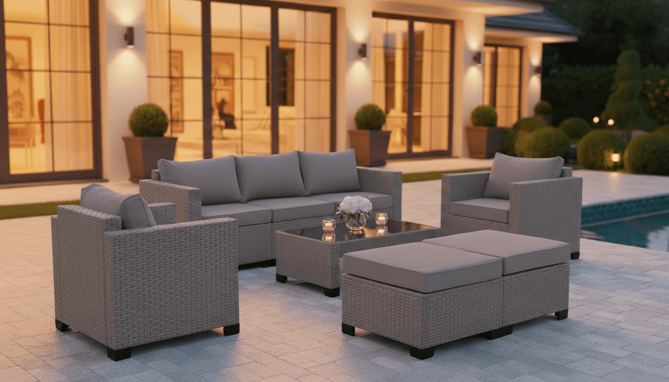 Featuring a spacious three-seater sofa, two single-seater chairs, and two matching ottomans, the Opal set offers a versatile modular layout—ideal for poolside lounging, backyard entertaining, or relaxed evening gatherings. Whether hosting guests or unwinding after a long day, this collection brings comfort and elegance to your outdoor space.